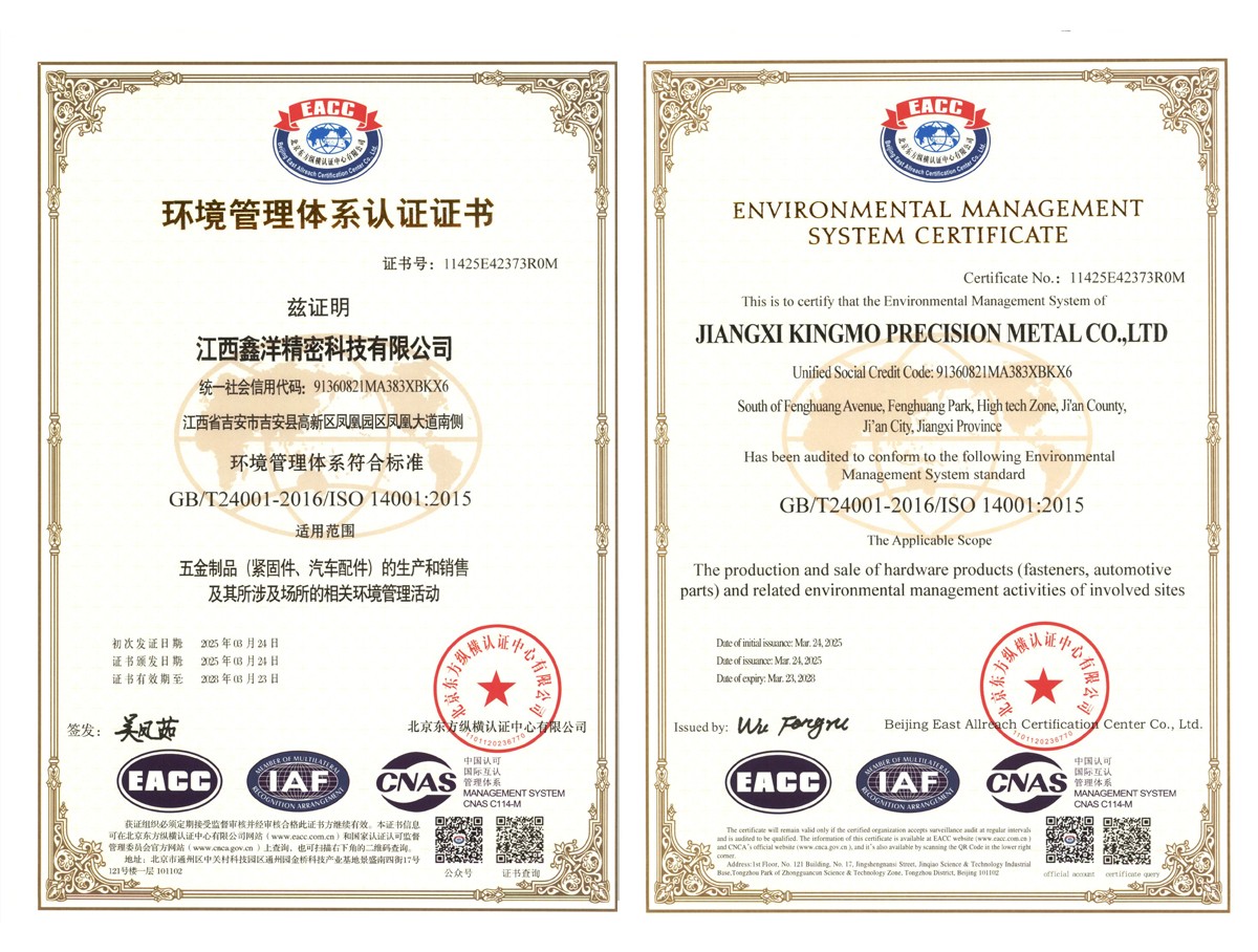環(huán)境管理體系認證證書